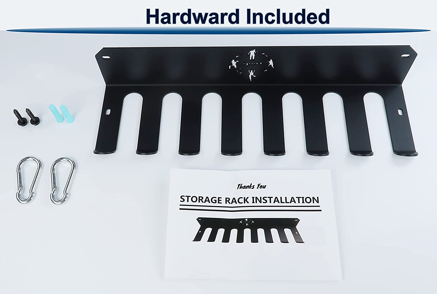 Simple to install - Include all necessary hardware and instructions. Included are 2 stainless steel screws, 2 universal anchors, 2 hanging carabiners, and 1 level. The 6 inch installation height is advised.